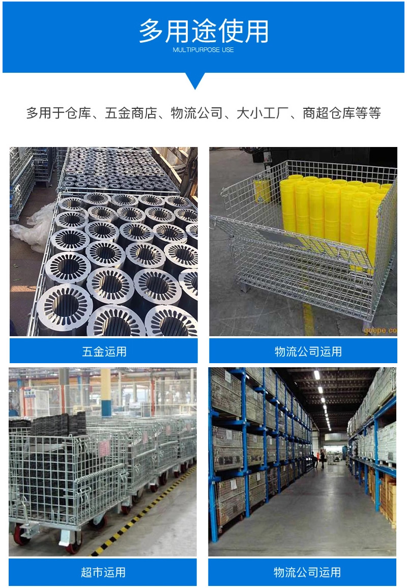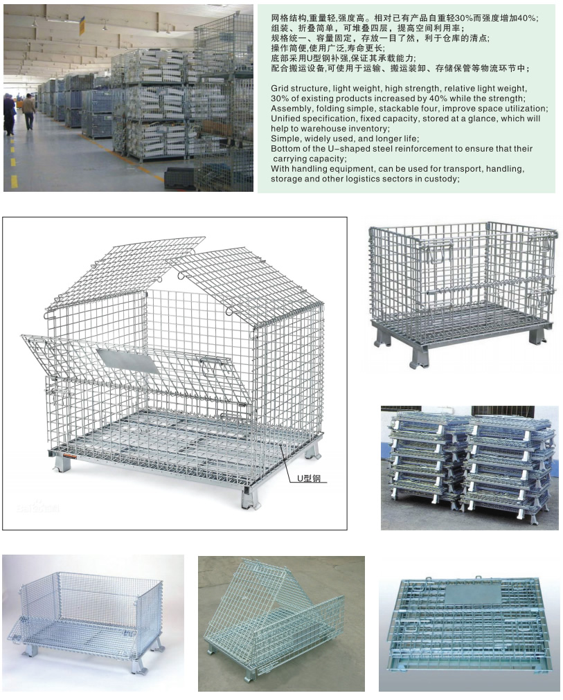倉儲籠又叫倉庫籠、蝴蝶籠,是倉儲運輸中很重要的一類物流容器,具有存放物品容量固定、堆放整潔、存放一目了然、便于庫存清點等優(yōu)點,同時也提高了倉儲空間的有效利用率。倉儲籠可以自由折疊,不用時還可以折疊存放,節(jié)省倉庫空間。